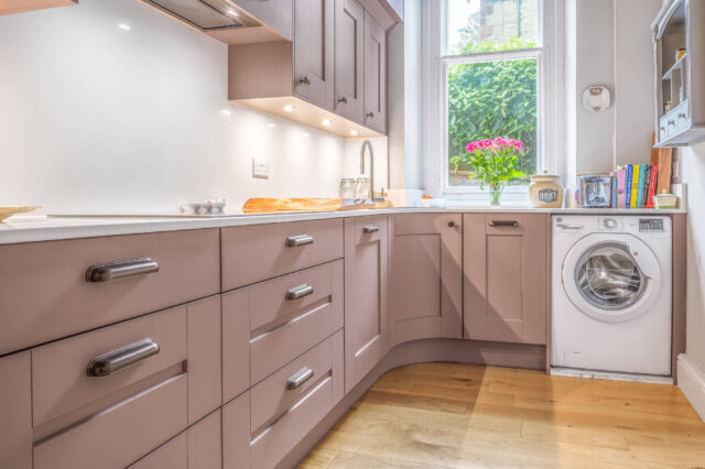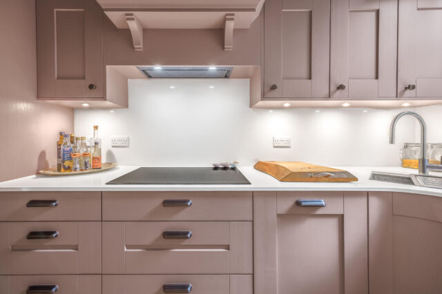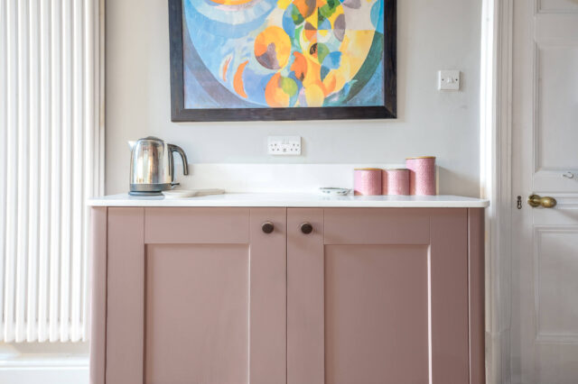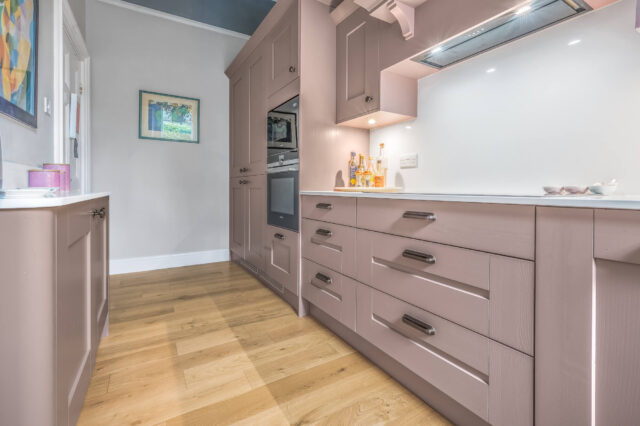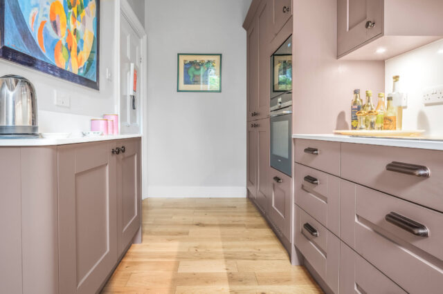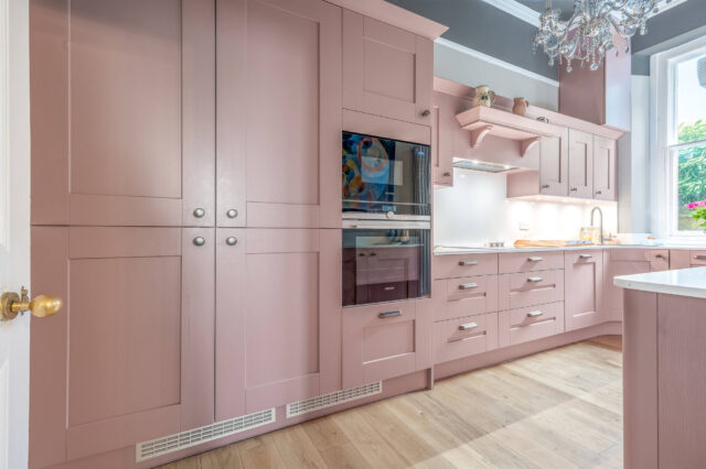 Our client was looking for something different, and the minute he saw the dusky pink kitchen, he immediately loved it. Mike worked with him to design a layout for his kitchen in an apartment within a period manor house.